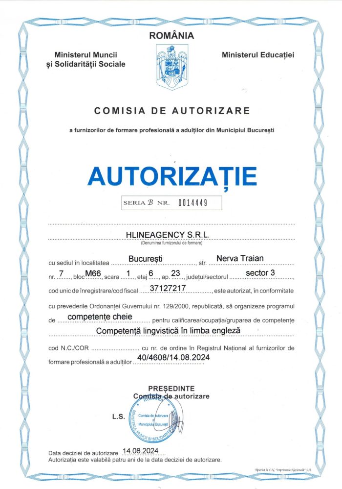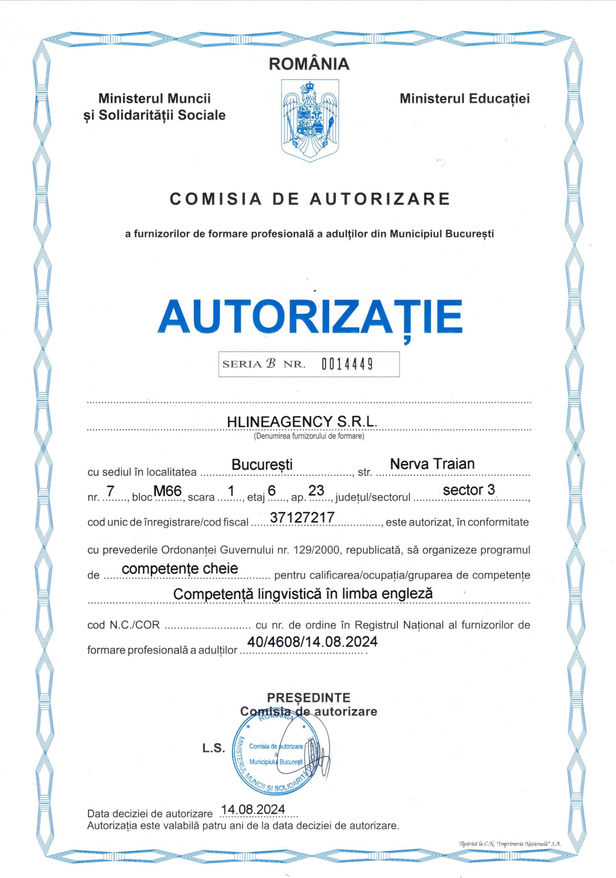 Curs de competență lingvistică în limba engleză – AUTORIZAT